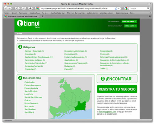 TIANVI.Imagen corporativa y diseño de la página web de Tianvi, un buscador de servicios en Barcelona. (Visita la web)